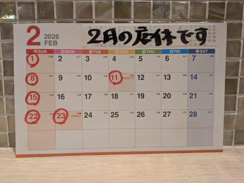 1月も沢山のご来店ありがとう御座いました。2月は少しづつ春を感じられる月です。月中辺りから春のお野菜を取り入れて参ります。👍 長ネギのマリネは溶岩焼にして甘味を出し、柚子胡椒で味のアクセントをつけました。☺️お酒のアテにぴったりです✨休日予定とおすすめメニューを載せましたのでご確認くださいませ。